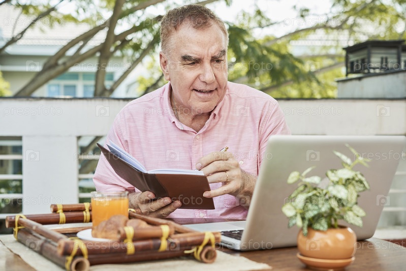Пожилой мужчина смотрит лекцию