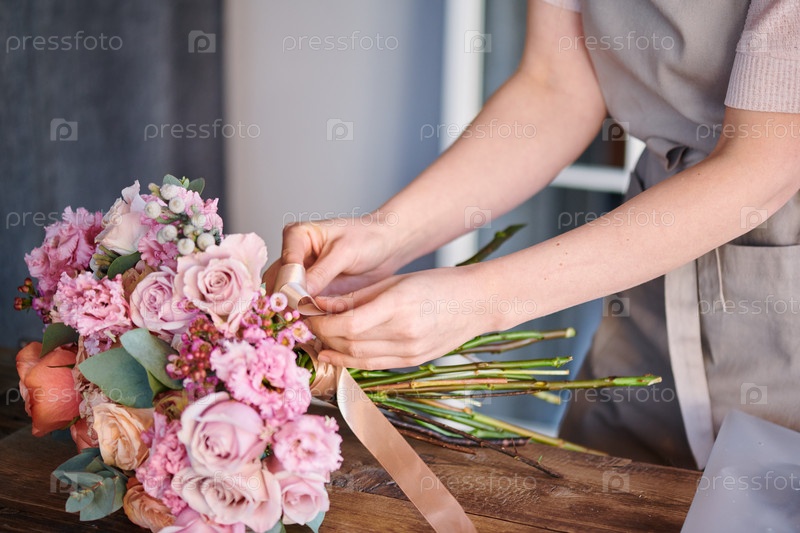 Связывание букета шелковой лентой