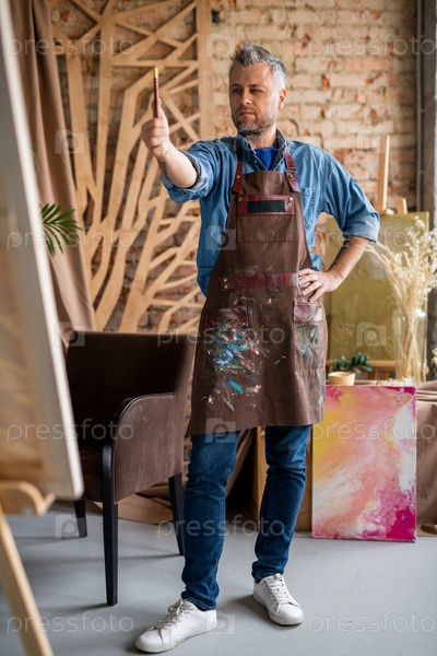 Художник с помощью кисти определяет центр картины или листа бумаги