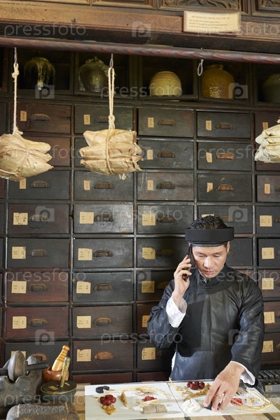 Азиатский практикующий врач упаковывает лекарственные ингредиенты
