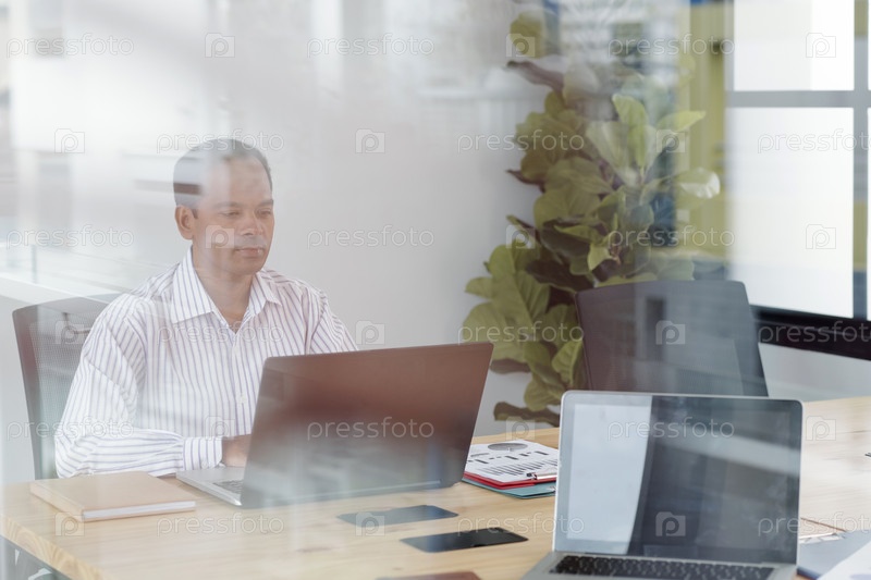 Бизнесмен, использующий ноутбук в офисе
