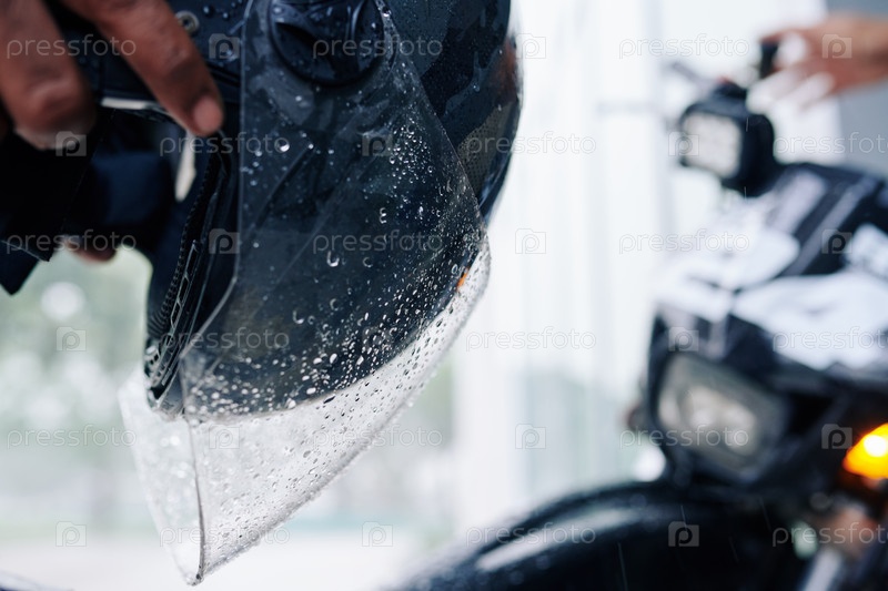 Мокрый мотоциклист шлем стекло