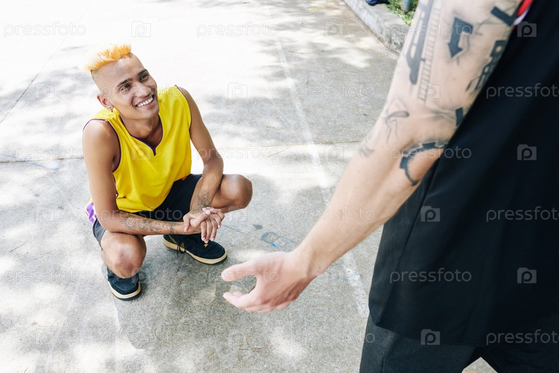 Спортсмен, слушающий историю друзей