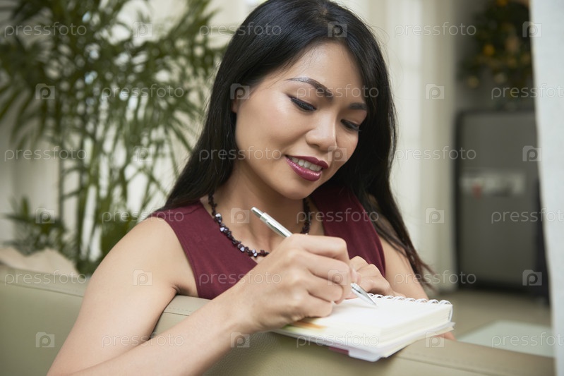 Женщина делает заметки в блокноте