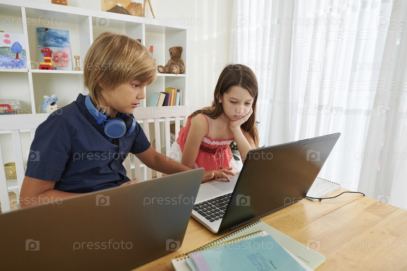 Мальчик помогает однокласснику с заданием