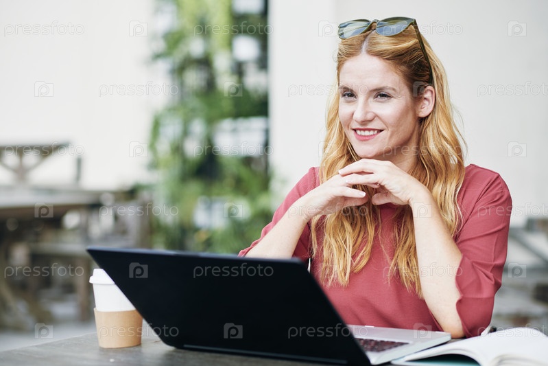 Независимая женщина, работающая на ноутбуке