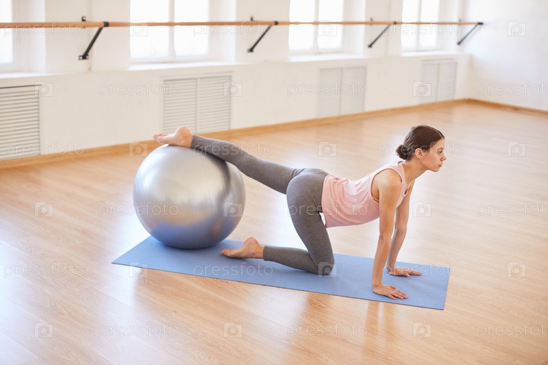 Тонкая девушка практикуется с тренировочным мячом