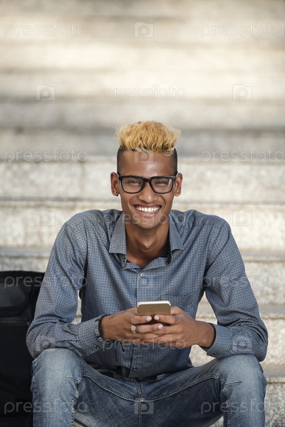 Африканская студентка колледжа со смартфоном