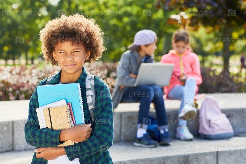 Школьник с учебниками на улице