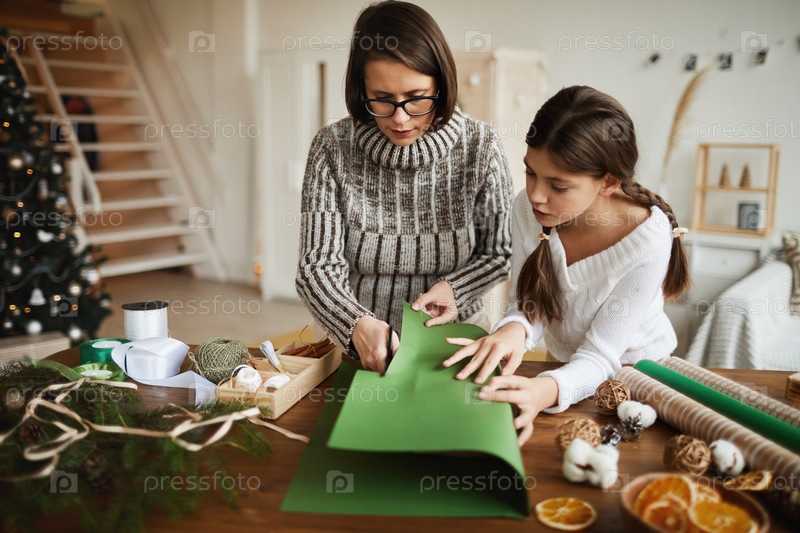 Семья делает рождественские подарки