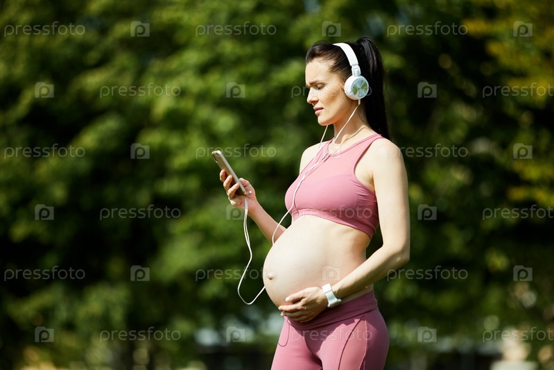 Беременная женщина слушает музыку