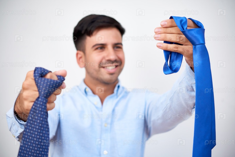 Улыбающийся мужчина выбирает галстук