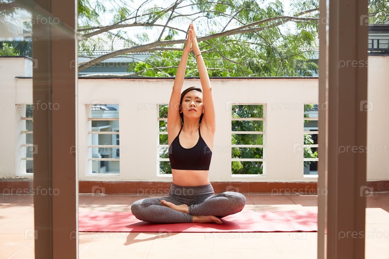 Женщина медитирует дома