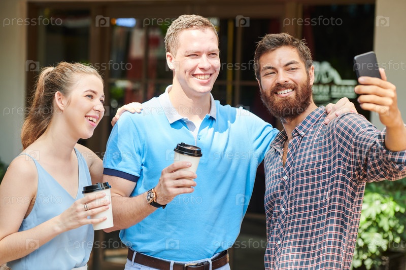 Бизнесмен делает селфи с коллегами