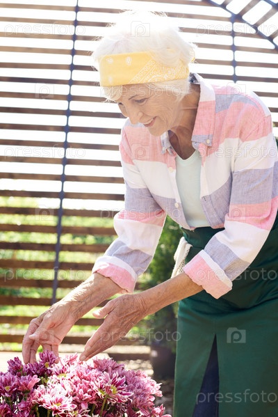 Женщина, заботящаяся о цветах старший