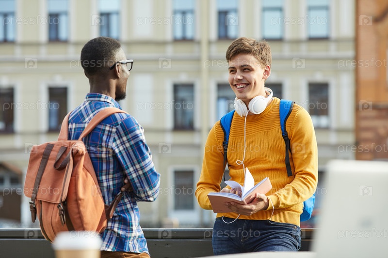 Студент колледжа разговаривает на открытом воздухе Tw
