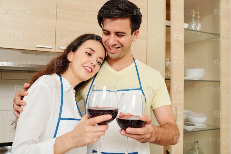 Улыбающаяся пара наслаждается красным вином