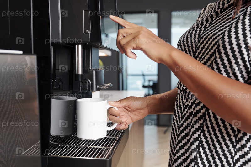 Женщина делает чашку кофе