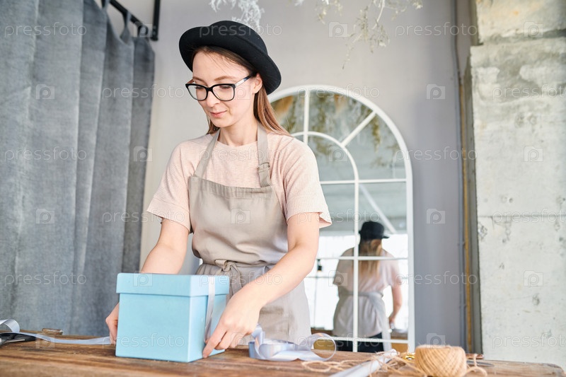 Связывание ленты вокруг коробки