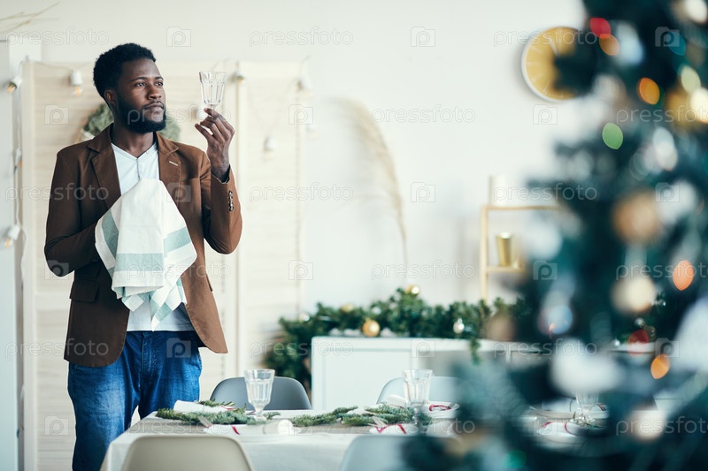 Мужчина, готовящий стол на Рождество в Африке