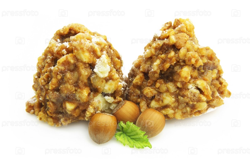 Две ореховые пирожные на белом фоне
