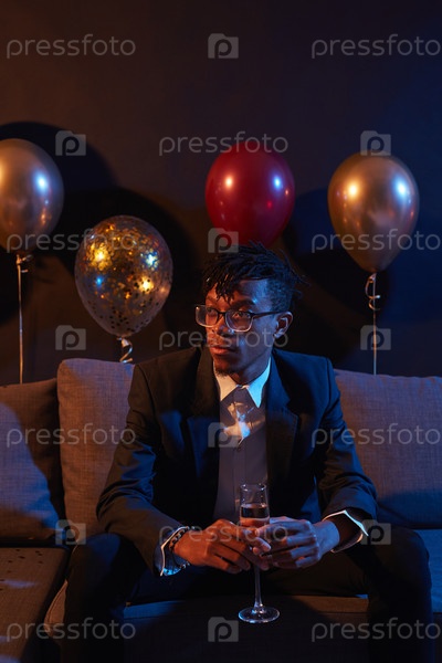 Красивый африканский мужчина ждет на вечеринке