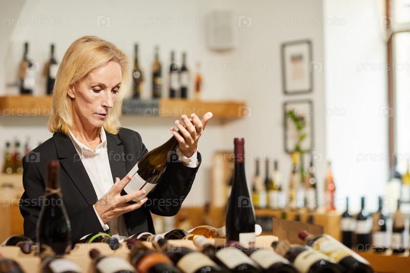 Женщина-соммелиер, выбирающая вино