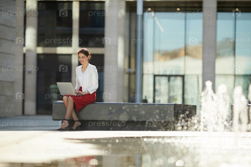 Деловая женщина, работающая на открытом воздухе
