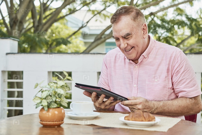 Старший мужчина читает новости