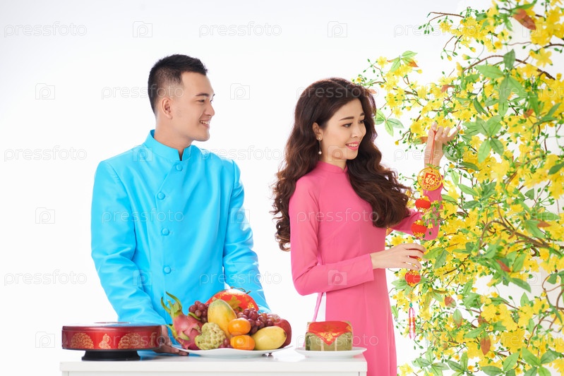 Пара украшает абрикосовое дерево