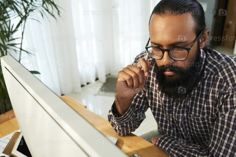 Вдумчивый бизнесмен, работающий с компьютером