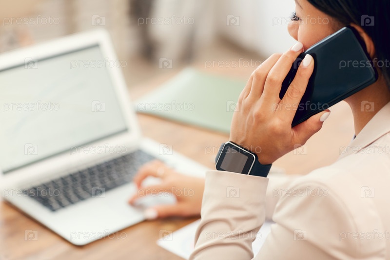 Деловая женщина, говорящая по смартфону Close Up