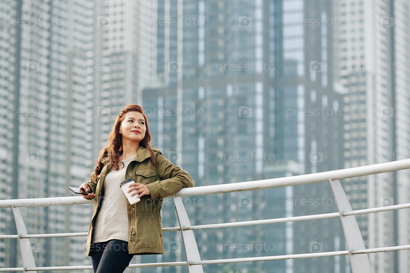 Улыбающаяся женщина стоит на мосту
