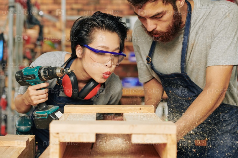 Плотники отдувают пиловую пыль