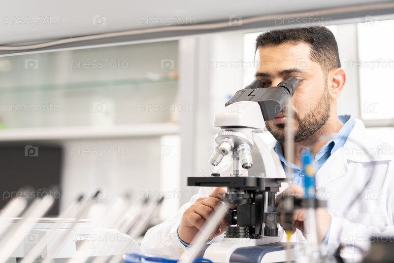 Арабский ученый, использующий микроскоп