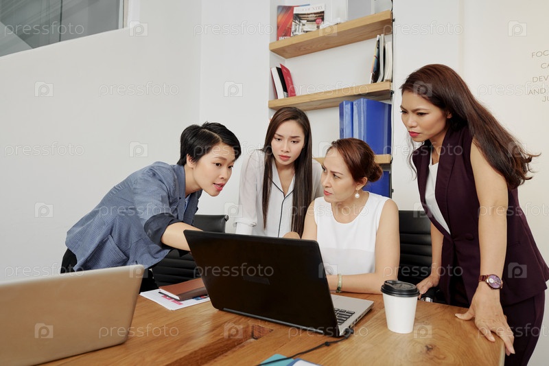 Группа деловых женщин, работающих на ноутбуке