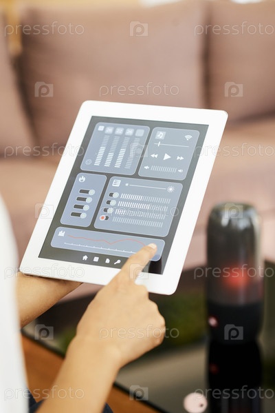 Женщина контролирует музыку с помощью онлайн-заявки