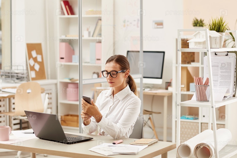 Деловая женщина, сидящая в офисе