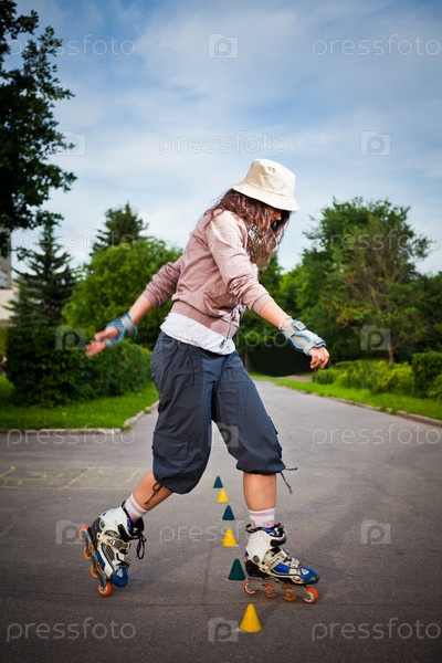 Девушка катается на роликах