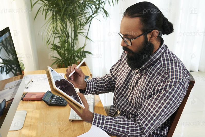 Бизнесмен, работающий на планшетном компьютере в офисе