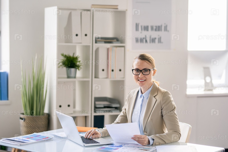 Уверенный рабочий белого воротничка, сидящий за столом