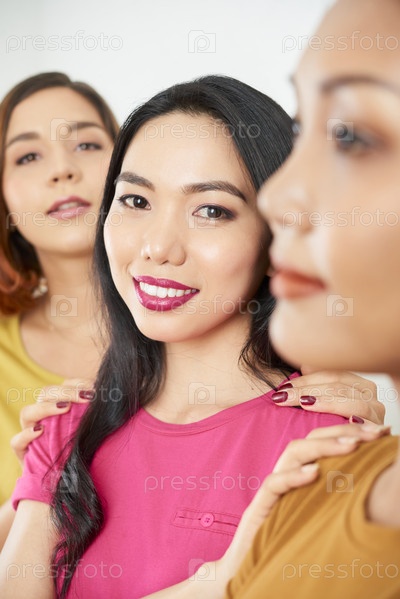 Азиатская женщина со своими друзьями