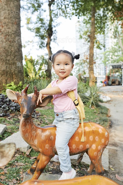 Счастливая девушка на оленей спине