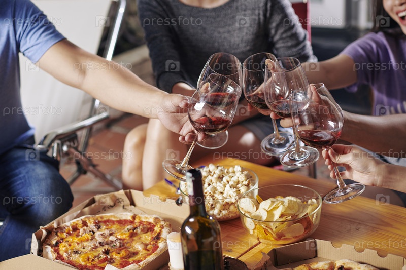 Друзья пьют вино на вечеринке
