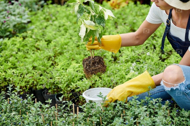 Садовник кладет растение в горшок