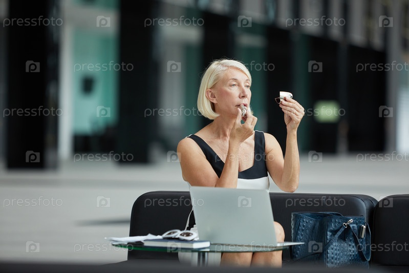 Деловая женщина, наносящая макияж