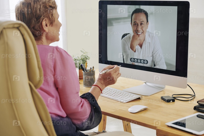 Деловая женщина проводит видеоконференцию