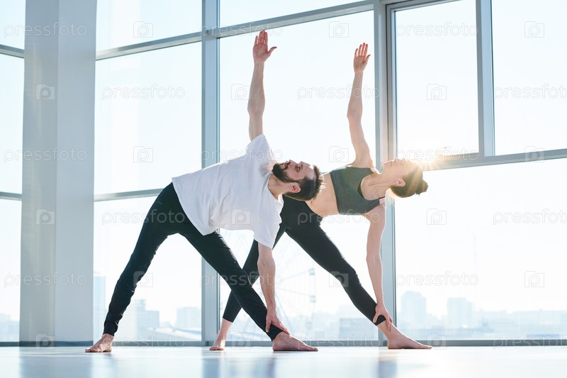 Пара занимается йогой