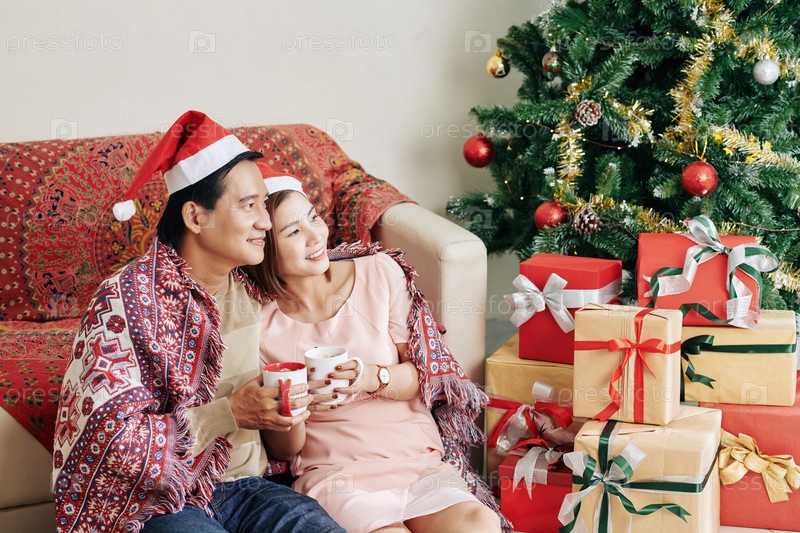 Счастливая пара наслаждается рождественским утром