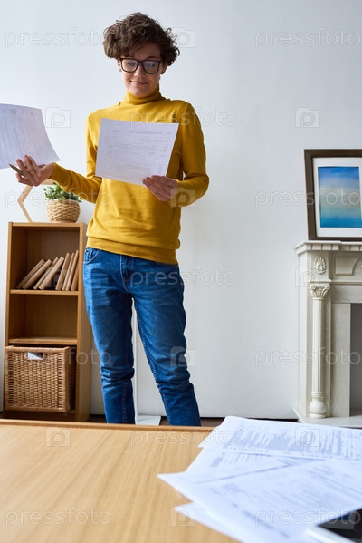 Сбитая с толку женщина читает налоговые документы